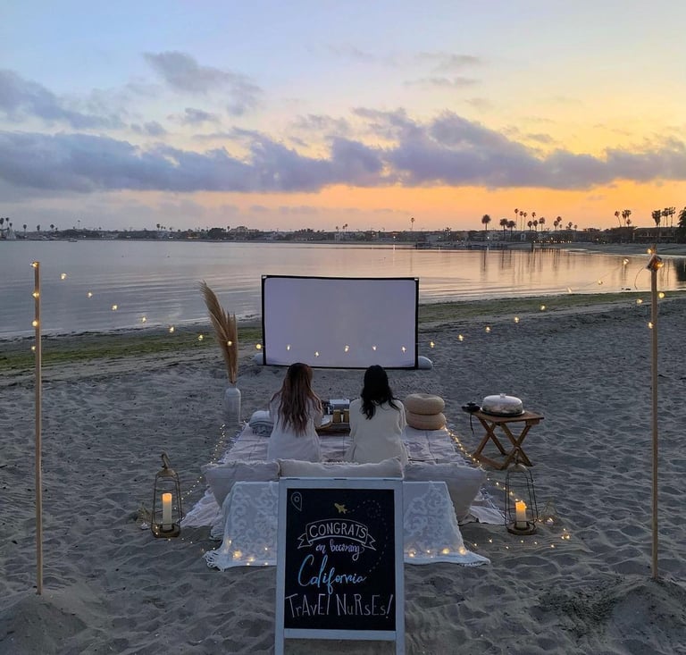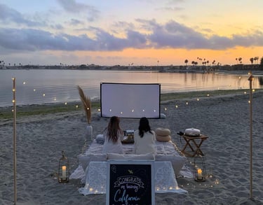 Disfruta de una experiencia única de cine frente al mar bajo el cielo estrellado. Ideal para parejas que aman las películas y desean un momento íntimo y mágico junto a su persona favorita.