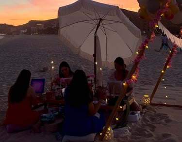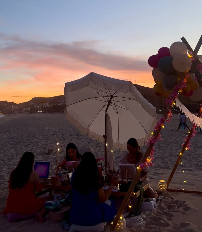 Saca tu lado artístico en un taller al aire libre donde podrás pintar lienzos, personalizar tote bags o crear piezas únicas en un entorno inspirador. Acompañado de un picnic con música y decoración playera, es la experiencia perfecta para amigos, familias o equipos de trabajo.