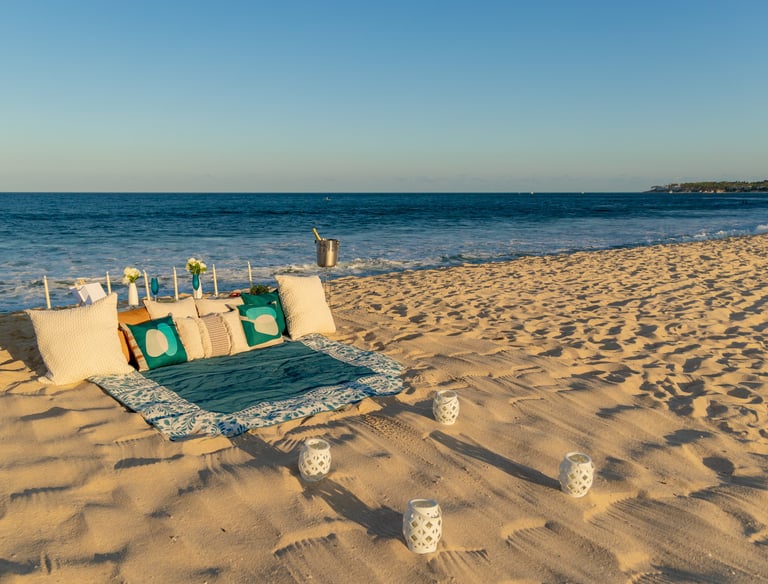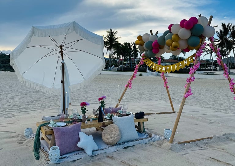 Celebra un cumpleaños inolvidable frente al mar con un picnic único y lleno de detalles.